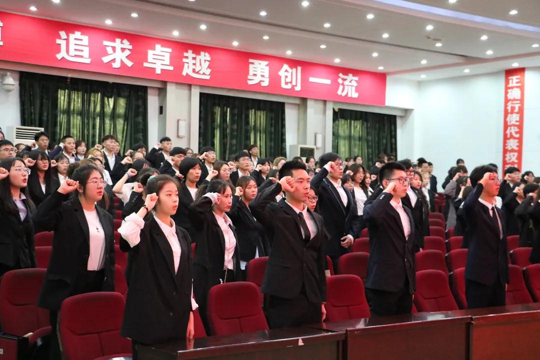 随后,培训班成员们全体起立,面向团旗,重温入团誓词,大家声音嘹亮、字句铿锵,展现了团员青年信仰马克思主义、听党话、跟党走的坚定决心。大家一同观看了红色影片《建党伟业》,影片中先辈们开天辟地、敢为人先的首创精神和坚定理想、百折不挠的奋斗精神,激励着青年一代把握青春,勇担重任。最后,在庄严、激情的团歌声中,本期“青马班”的开班仪式圆满结束。