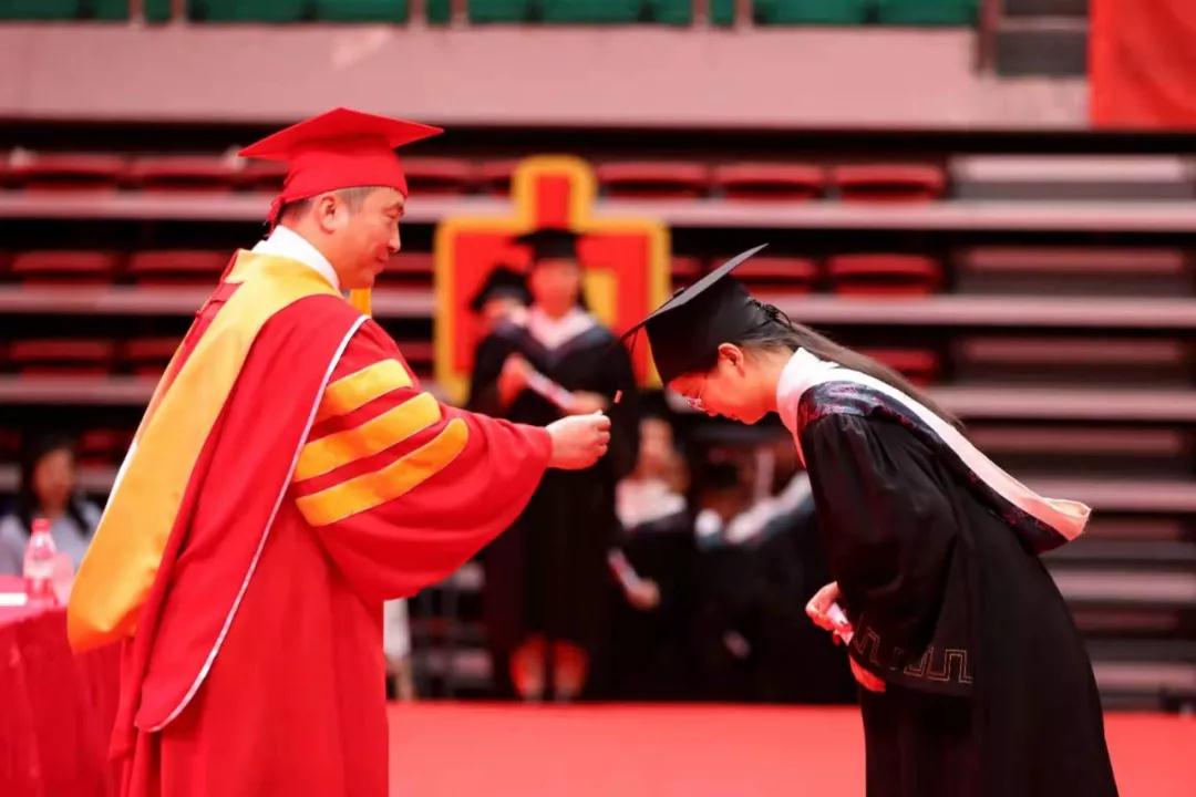 全体领导班子成员为本专科毕业生、毕业留学生、研究生等层次的代表颁发毕业证书。