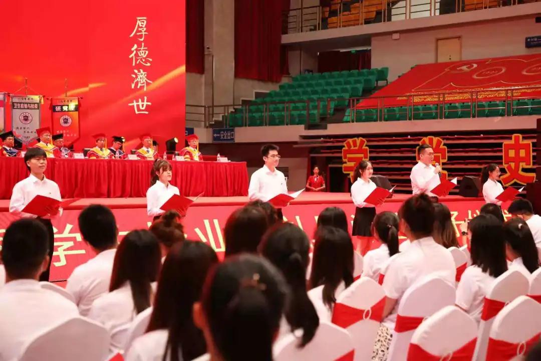 基础医学院、公共卫生学院、护理学院、口腔医学院、医学应用技术学院、药学院的在校生代表向顺利毕业的学长、学姐们献辞,表达对学长、学姐们的最真挚的祝愿,祝福他们前程似锦!
