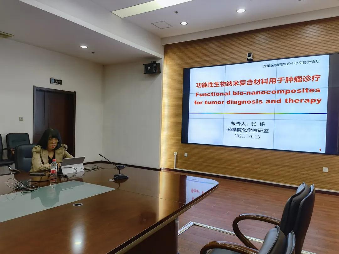 在题为“功能性生物纳米复合材料用于肿瘤诊疗”的报告中,张杨副教授介绍了其相关研究基础:智能纳米药物输送平台与肿瘤治疗、基于噬菌体表面展示技术的生物传感,展望了未来的科研工作方向:利用噬菌体文库高通量筛选特异性配体或分子探针、基于介孔纳米酶催化肿瘤联合治疗,同时表达了期望与校内医学专业背景教师开展合作研究的意向。