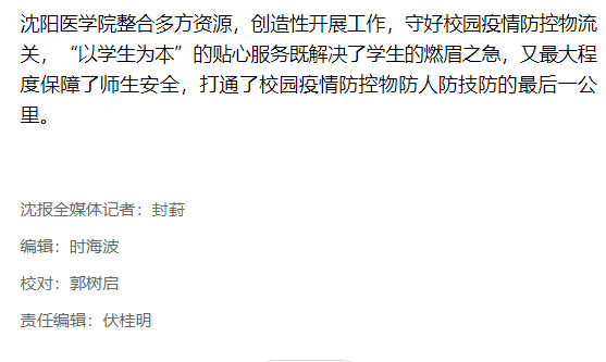 中国新闻网报道沈阳医学院为在校学生送疫情防控“开心果”