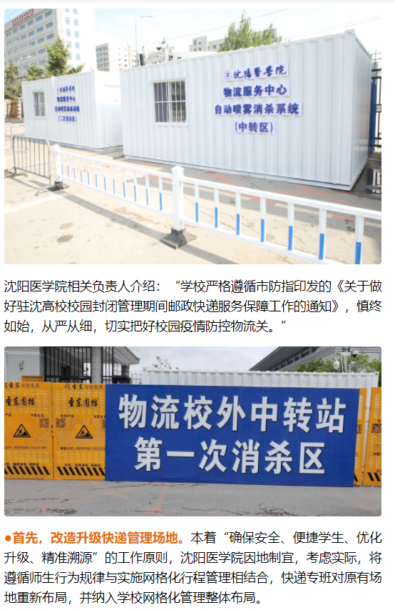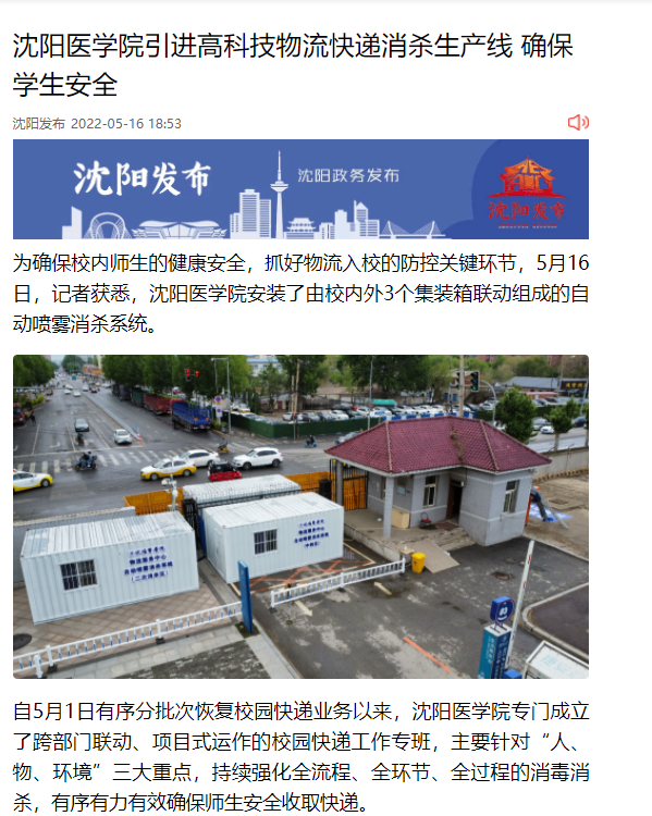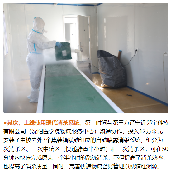 沈阳发布:沈阳医学院引进高科技物流快递消杀生产线 确保学生安全