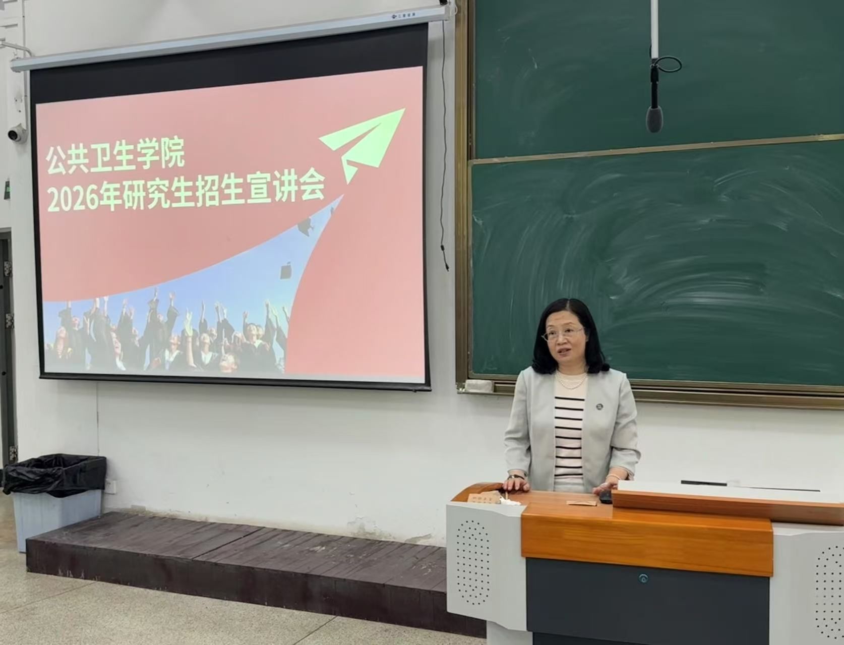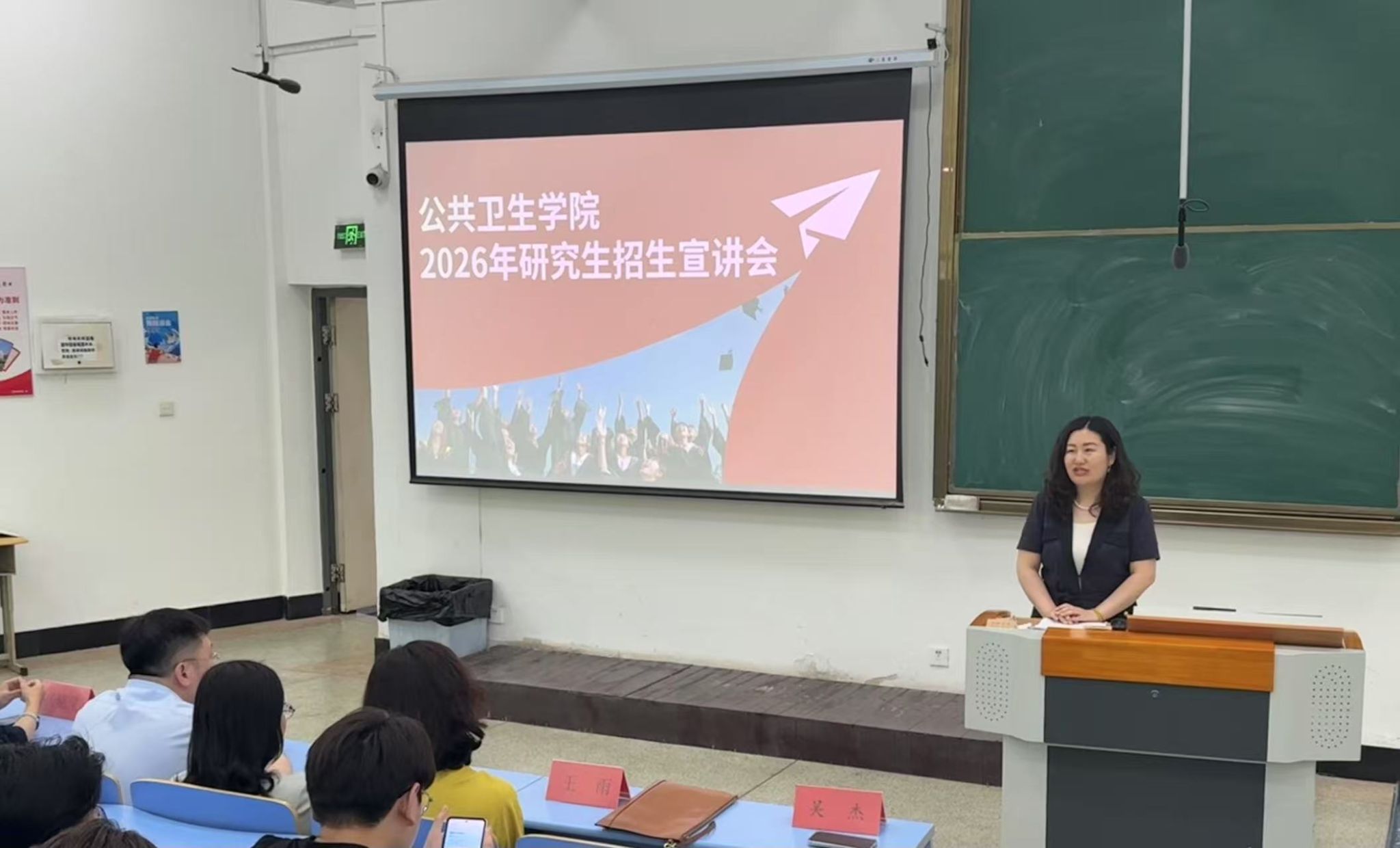 2025年6月6日上午,第一教学楼J109教室,公共卫生学院面向全院及其他学院备战考研的学生,举办了2025年公共卫生学院研究生招生宣讲会。莅临宣讲会的领导有研究生院院长王雨教授,研究生院副院长杨旸,研究生院招生科科长关晓莹,公共卫生学院院长马明月教授,公共卫生学院党委书记杨威,公共卫生学院副院长吴杰参加并主持会议,到场的老师还有公共卫生与预防医学学位点6个二级学科的学科带头人。本次宣讲会共有100余名学生参加。